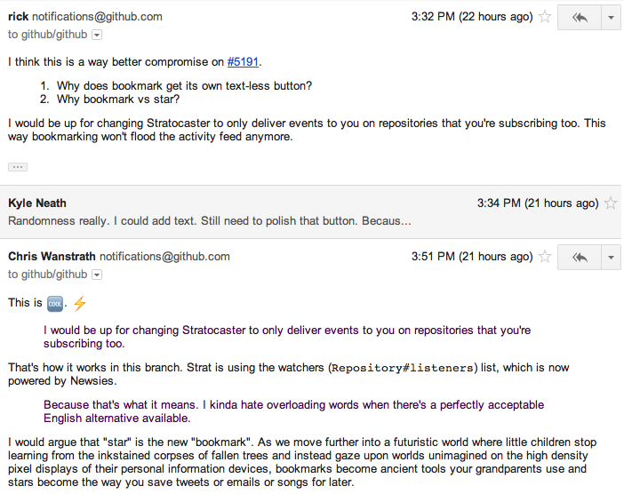 Like I think github uses mention@noreply.github.com when sending email that mentions you - maybe there’s some other things like that that’d help distinguish the different email reasons?